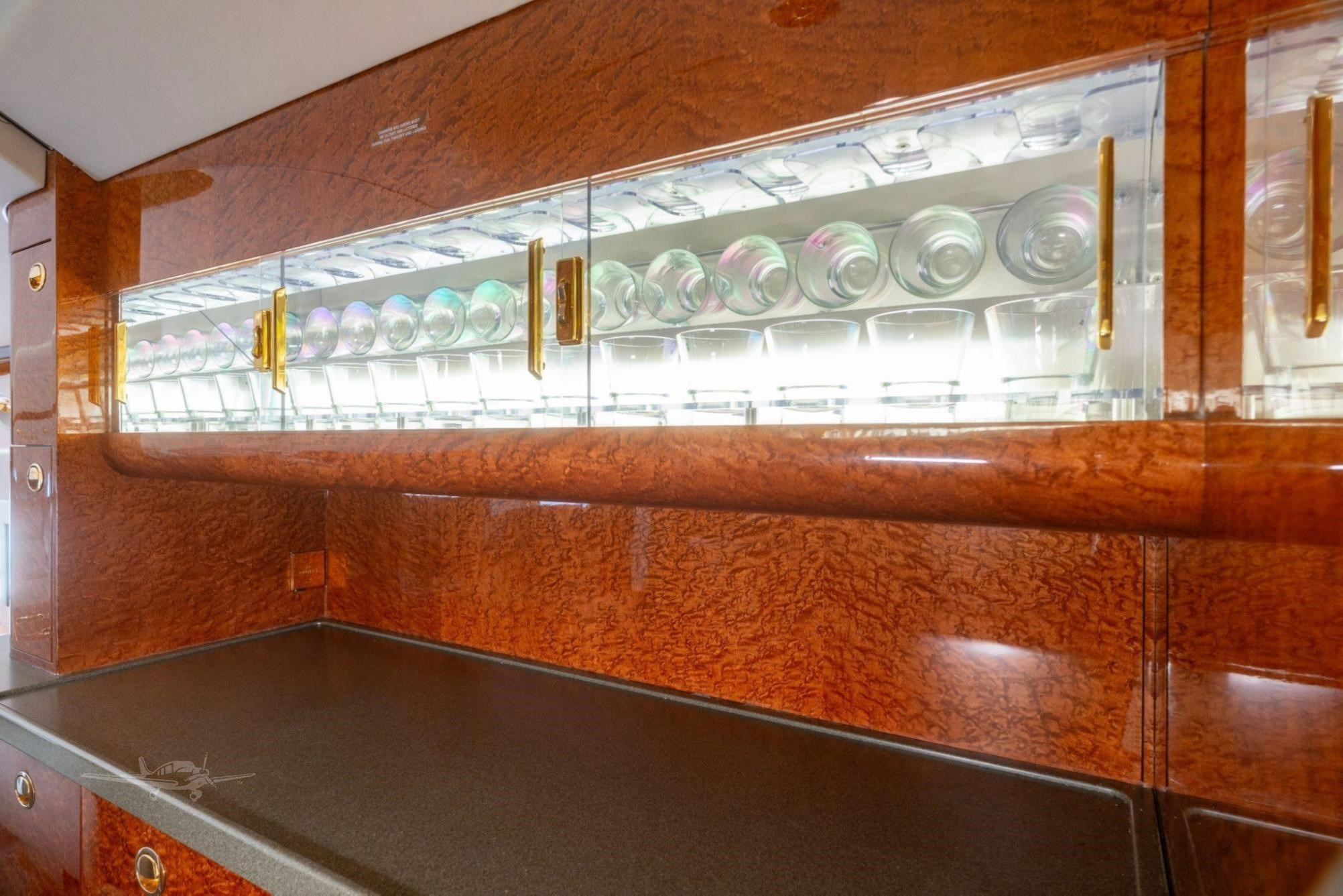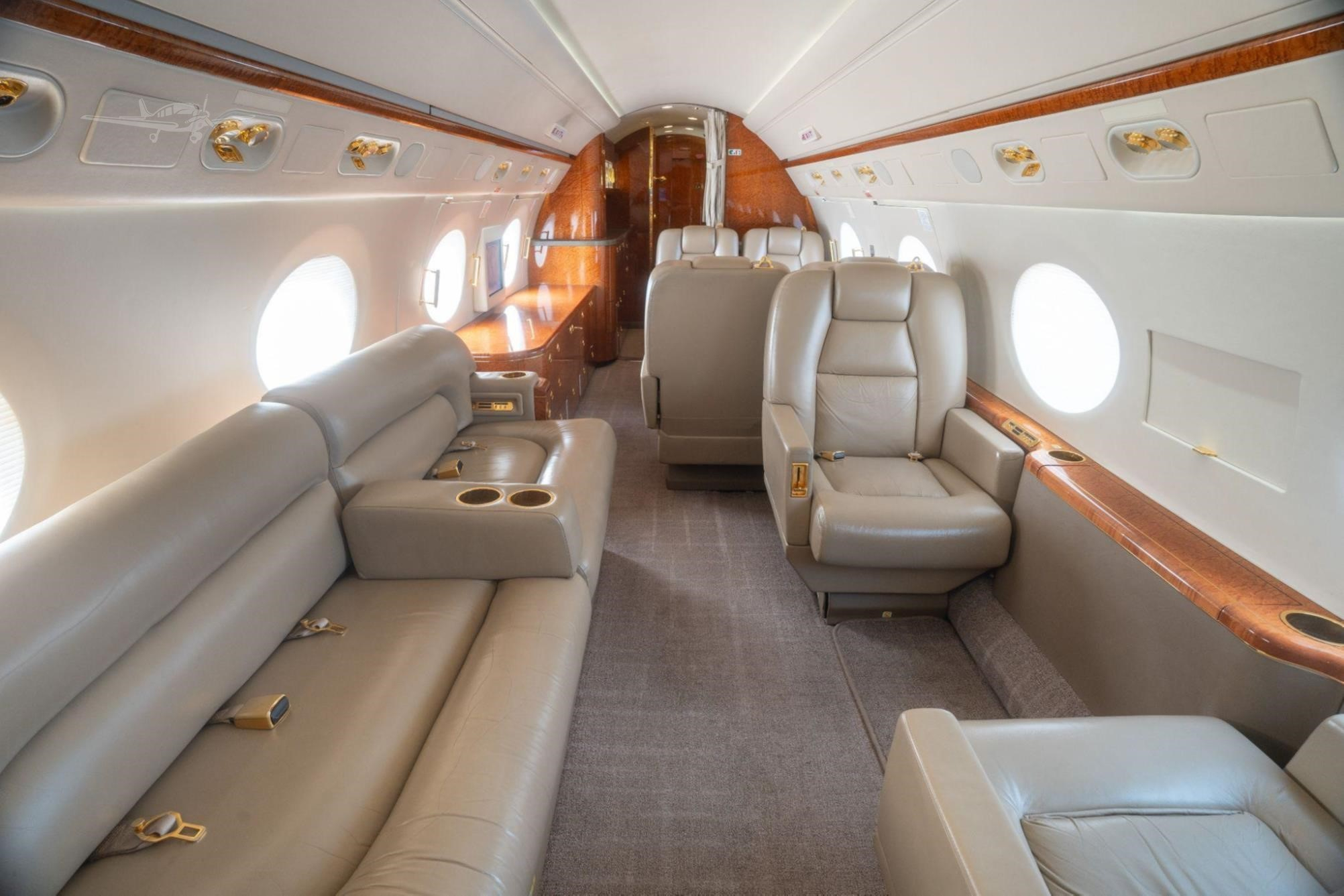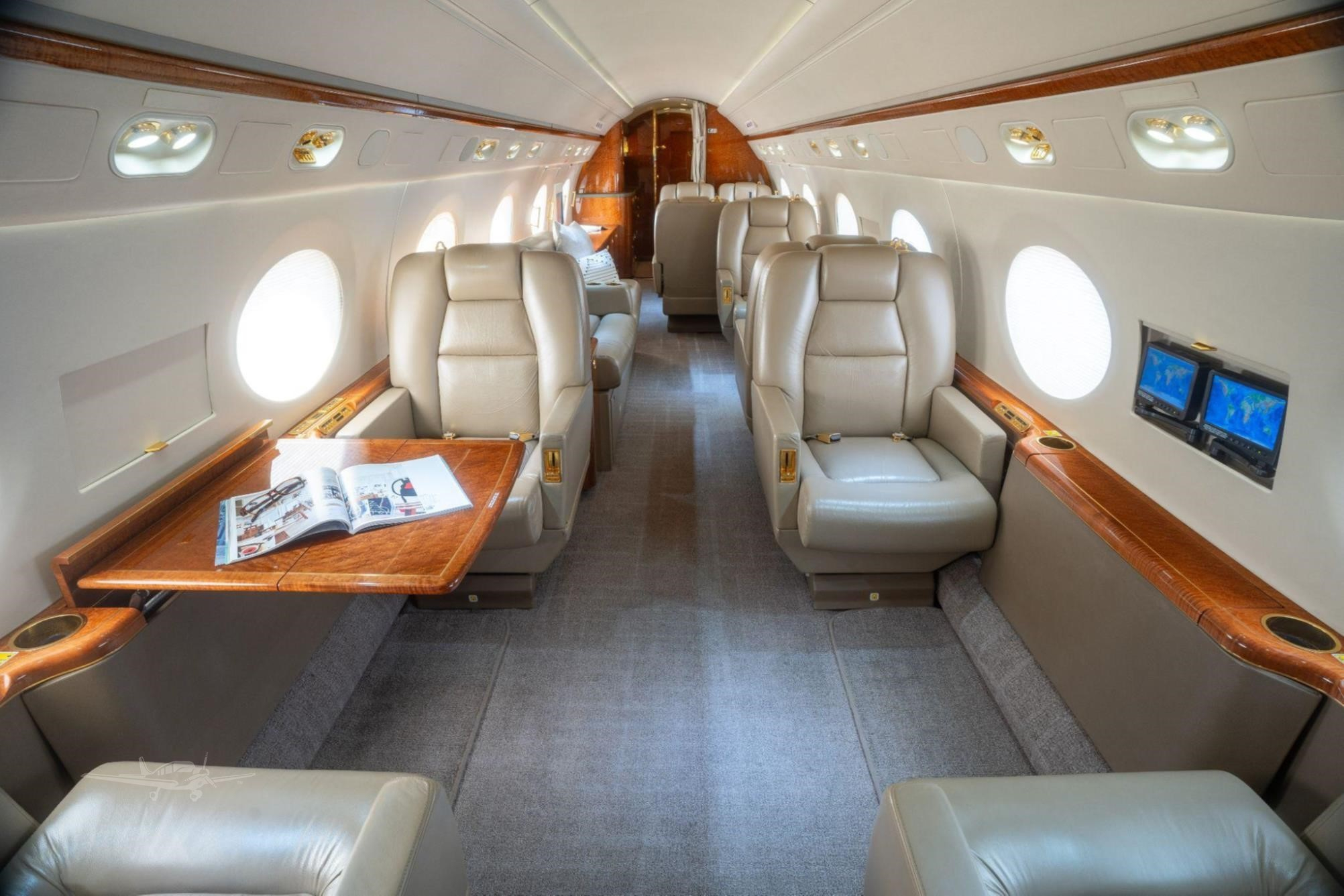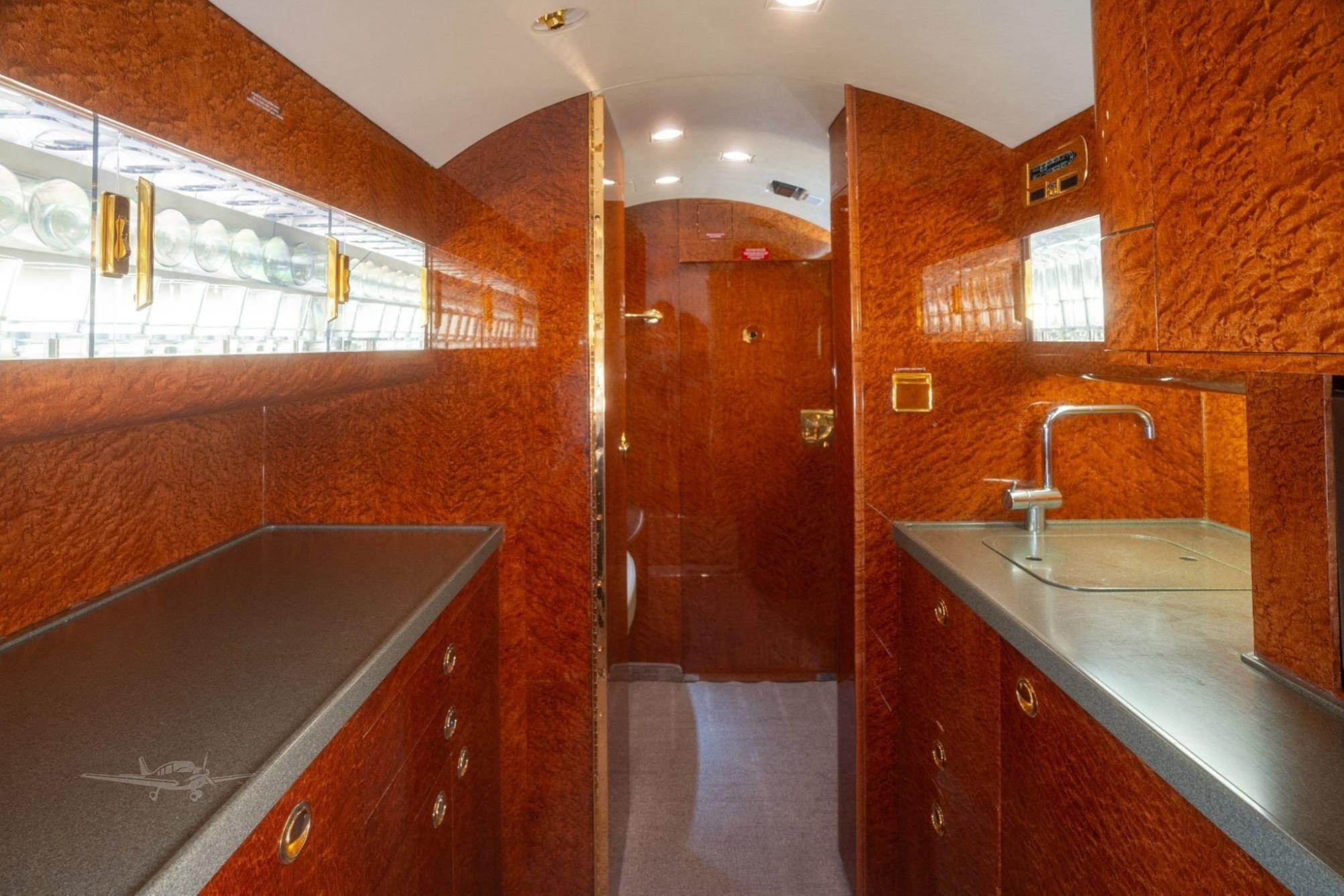 - Additional Features: Crew rest area, jumpseat, Airshow 4000 entertainment system, multiple monitors including 19-inch bulkhead HD monitors