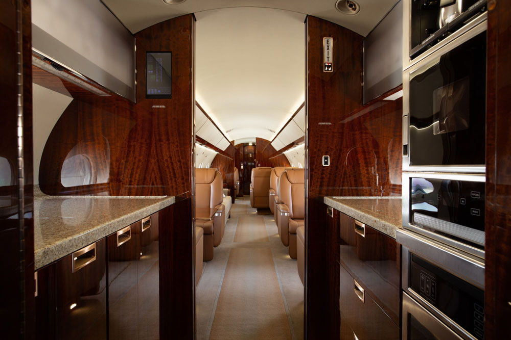 The cabin is arranged around a wide-body feel for a business jet, emphasizing personal space, low fatigue on long legs, and flexible zones for meeting, dining, and rest. Large windows and a high cabin altitude strategy are core to the passenger experience on extended flights, supporting productivity and sleep quality. Most aircraft are delivered with an enclosed aft lavatory and a forward galley sized for long-range catering needs.