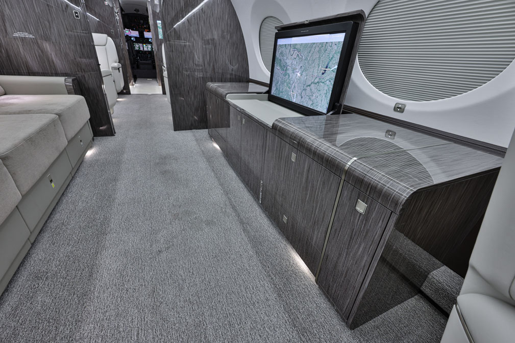 - Entertainment: Gulfstream GCMS, dual-slot Blu-ray/DVD/CD player, multiple cabin monitors