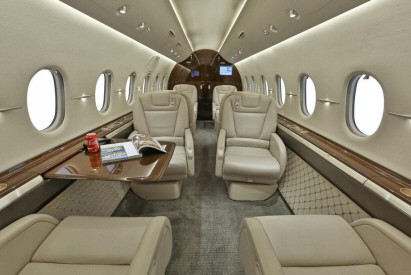 - Interior: Executive configuration for 8 passengers; features double club seating, a belted aft lavatory seat, and a forward refreshment galley.