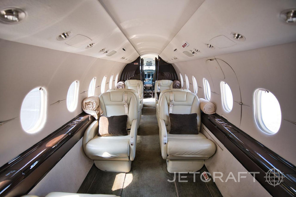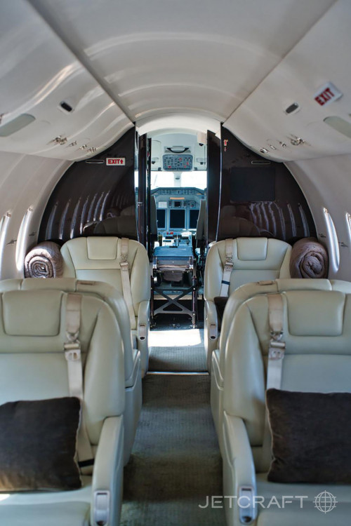 - Cabin configuration: four-place club forward, four-place club aft, jumpseat.
