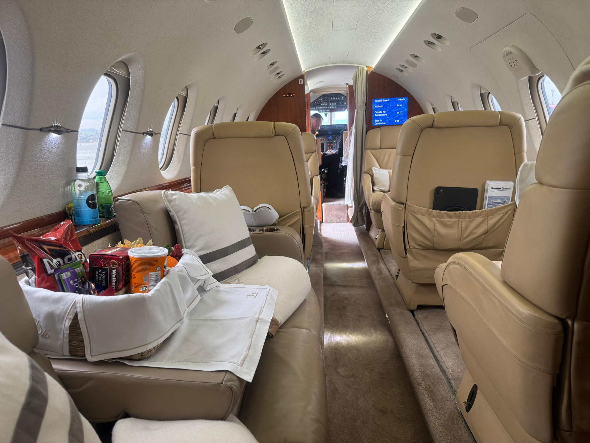 The cabin follows the well-known Hawker formula: a relatively wide midsize cross-section with a club seating area that supports meetings and work, plus an enclosed aft lavatory on most aircraft. Storage and baggage capacity are generally practical for the category, with access arrangements varying by configuration and operator preferences.