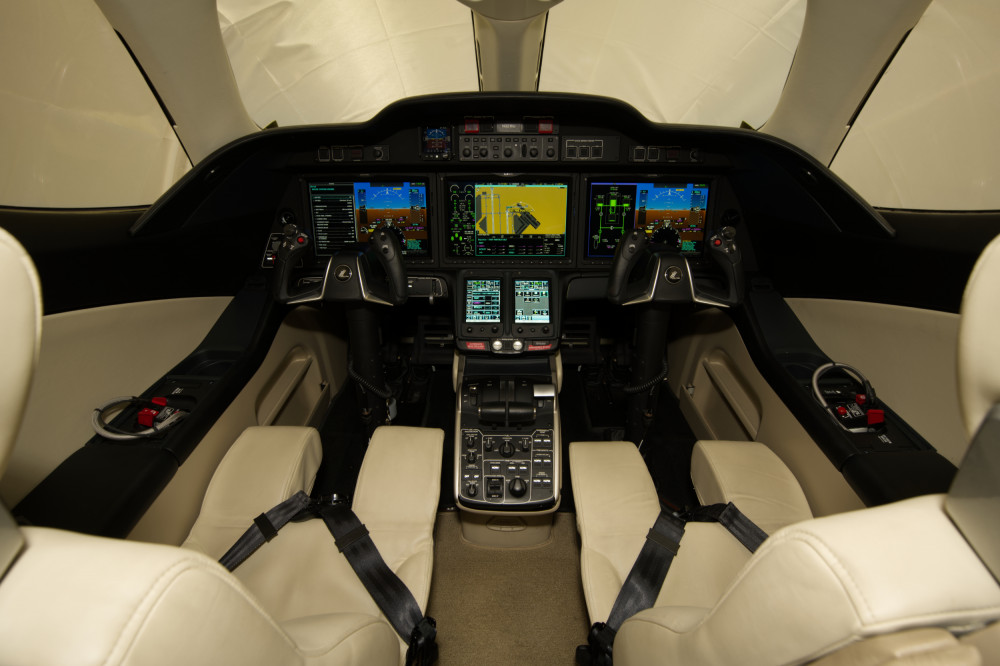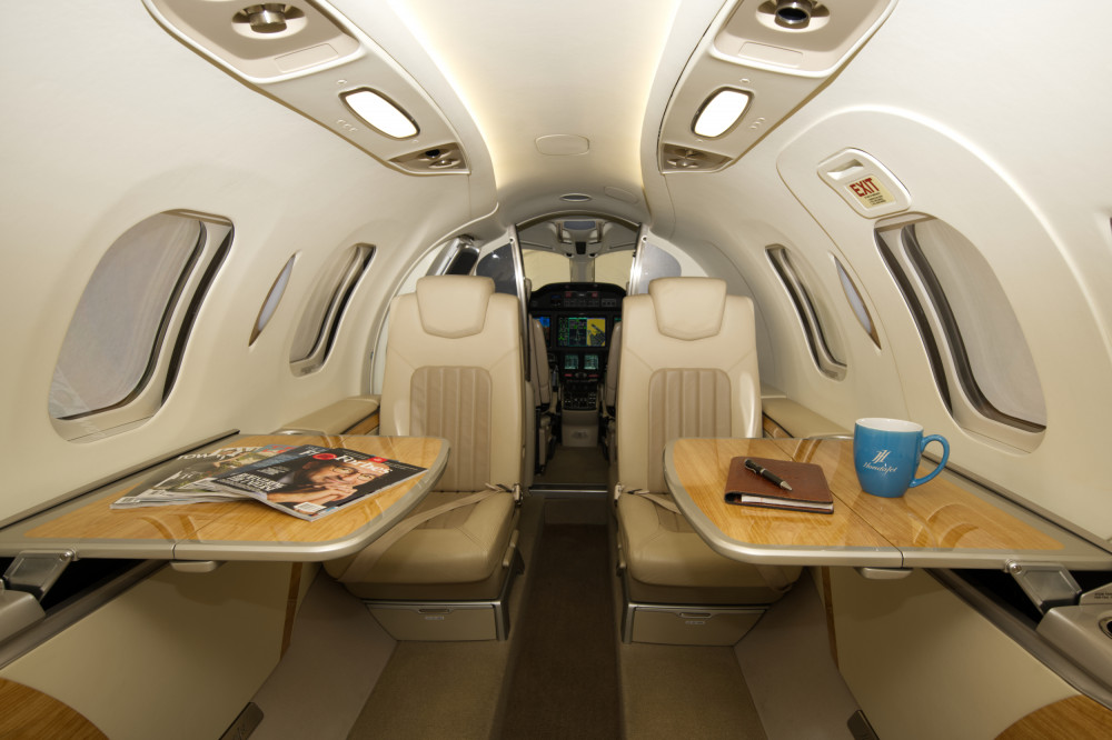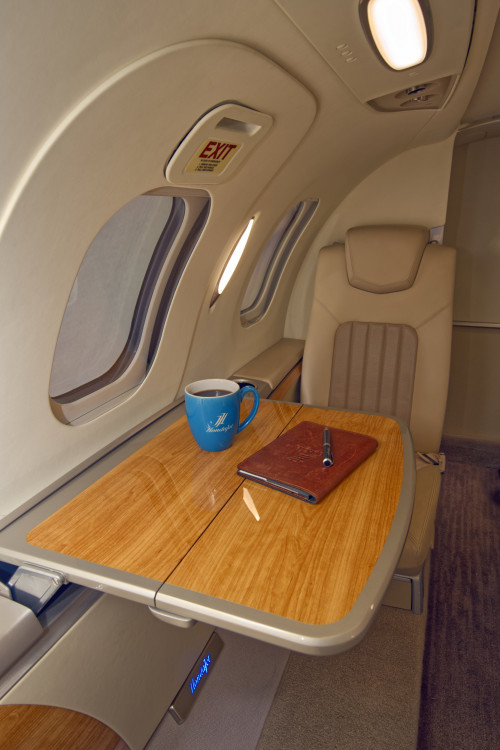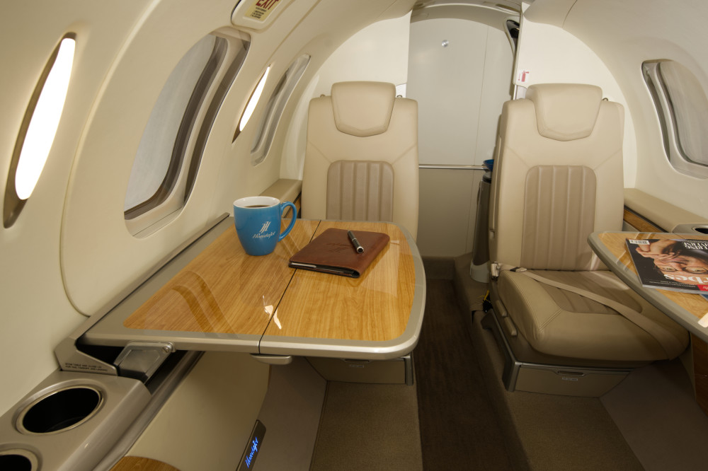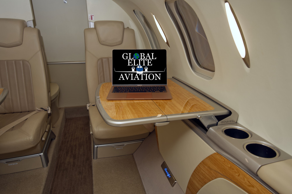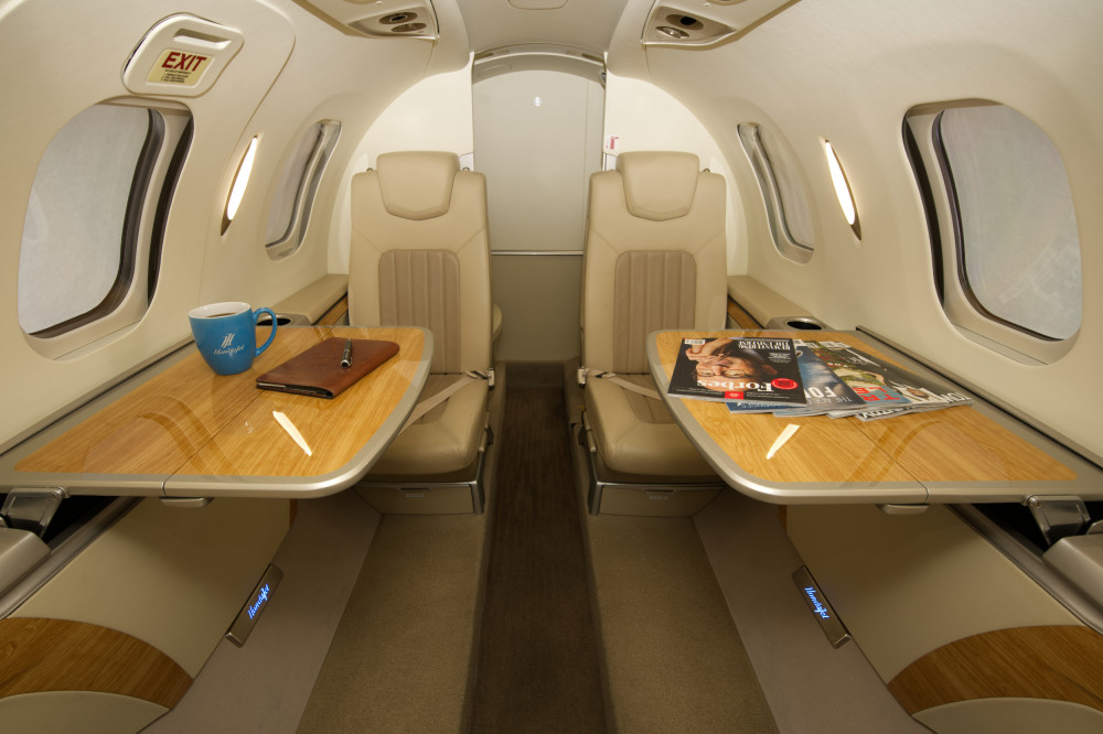 - Interior: Executive configuration for 6 passengers; upgraded dual-tone seating; private externally-serviceable belted aft lavatory; parchment interior with soft beige and light tan accents; birch carpeting; Pacific maplewood trim; enhanced cabin management system.