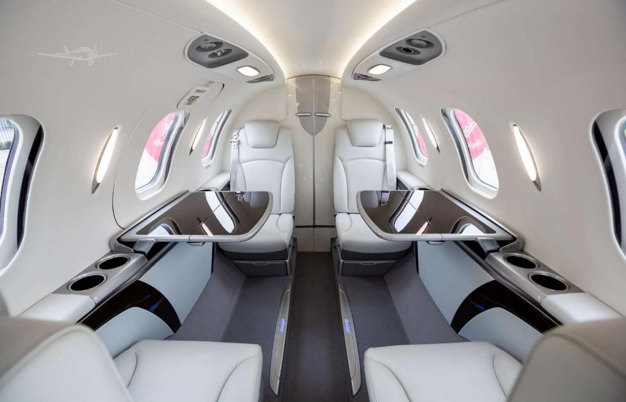 For a VLJ, the HA-420 emphasizes usable cabin volume and a refined layout, typically with a forward refreshment area and an enclosed lavatory. Seating is commonly arranged in a club configuration that supports face-to-face conversation, with cabin comfort most noticeable on 1–2 hour legs. Like most jets in this size class, standing room is limited and aisle space is narrow, so the experience is strongest when passenger count is kept modest.
