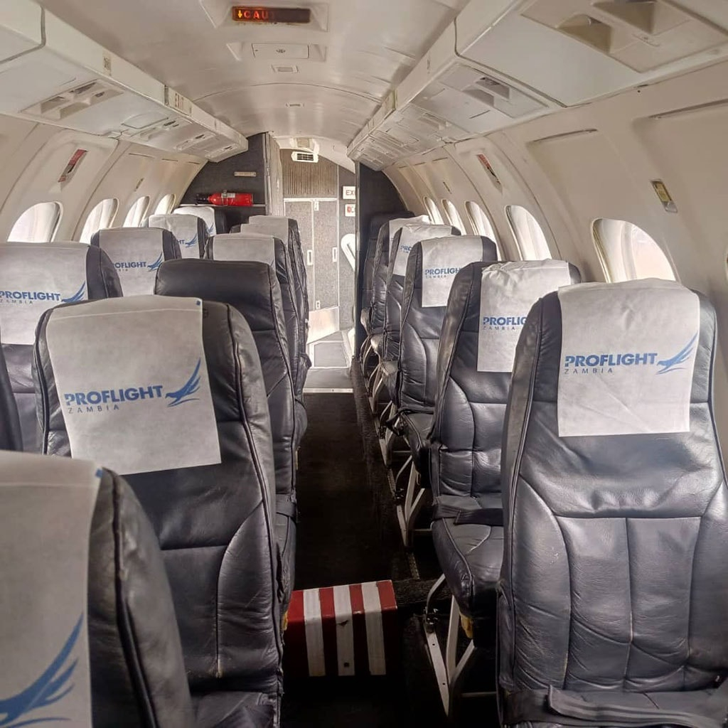 - Interior: Passenger capacity of 19; Commuter configuration; Freon air conditioning; Features cabinetry with seat tray tables; Equipped with a lavatory.