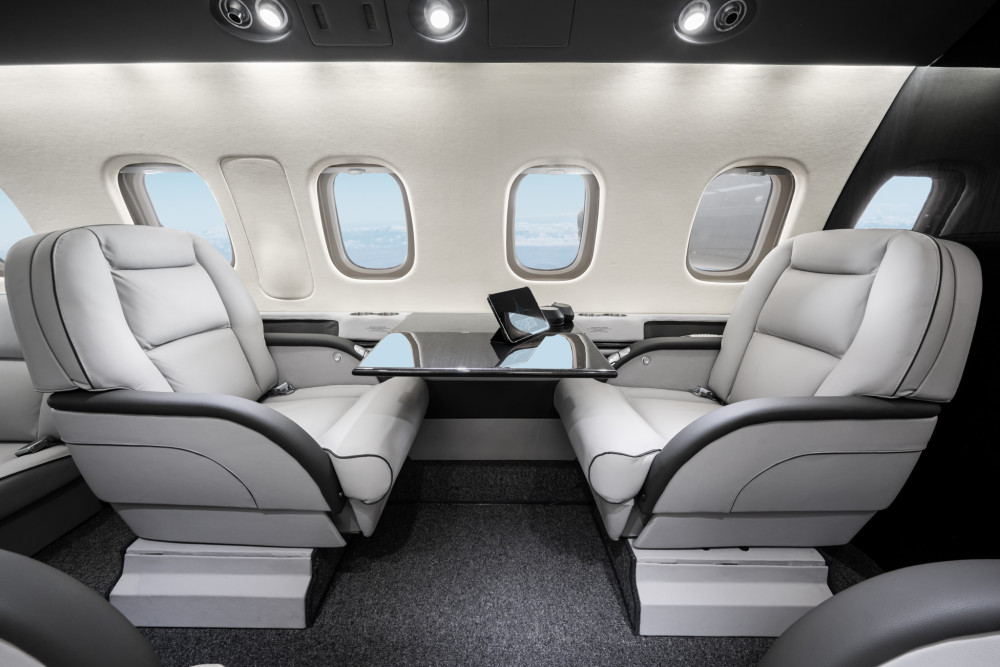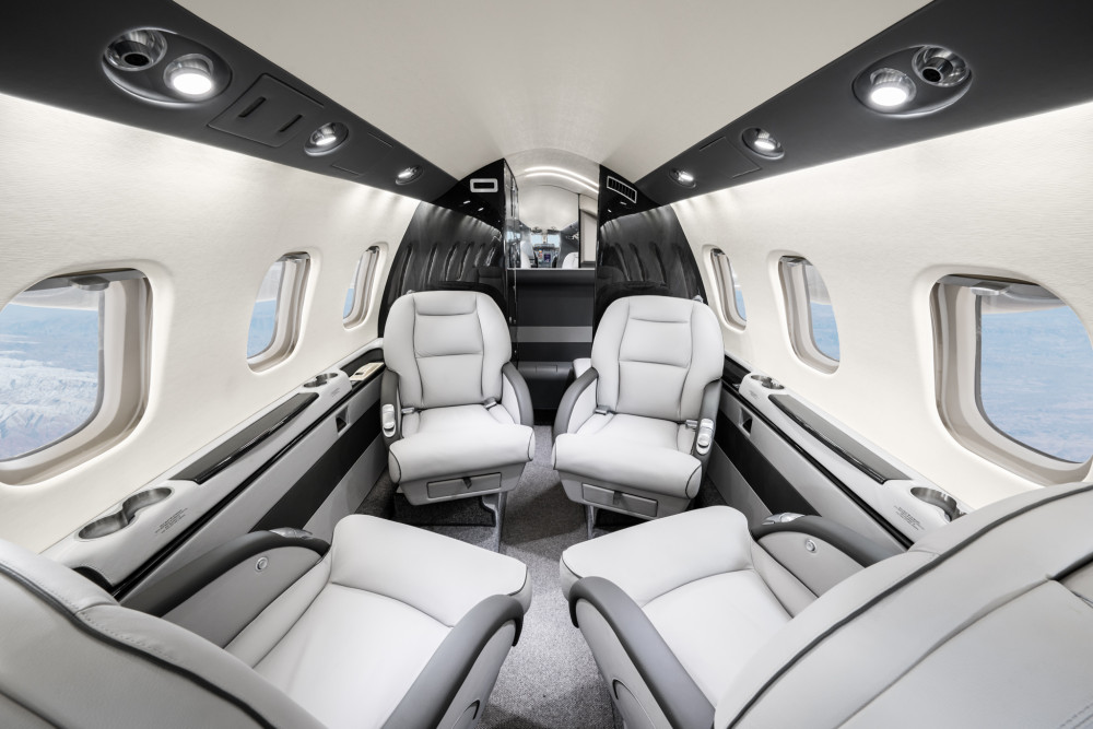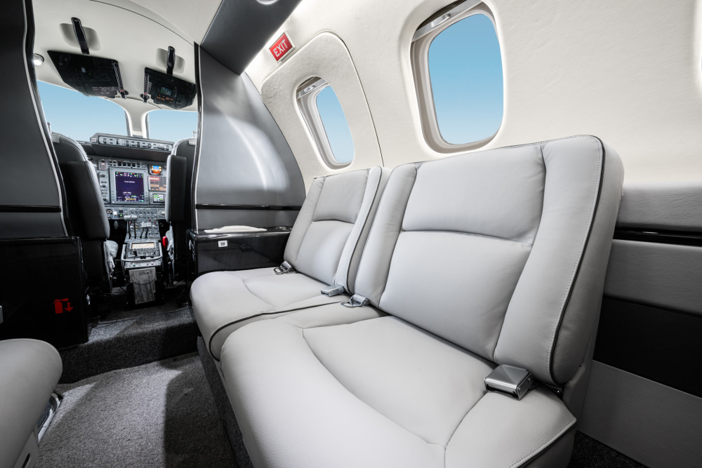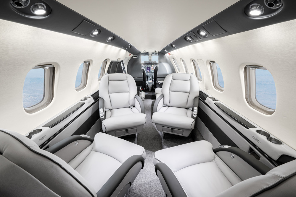 The cabin is notably tall and wide for the category, with a flat floor and an executive layout that supports comfortable seated work and conversation on typical 1–3 hour sectors. Pusher props help keep the cabin environment comparatively quiet for a turboprop, and large windows support a bright interior. Baggage capacity is generally suitable for business travel loads, but buyers should confirm how much is accessible in-flight and how loading limits interact with fuel for longer legs.