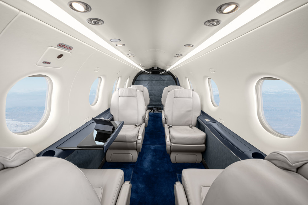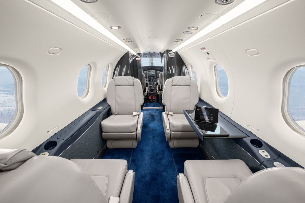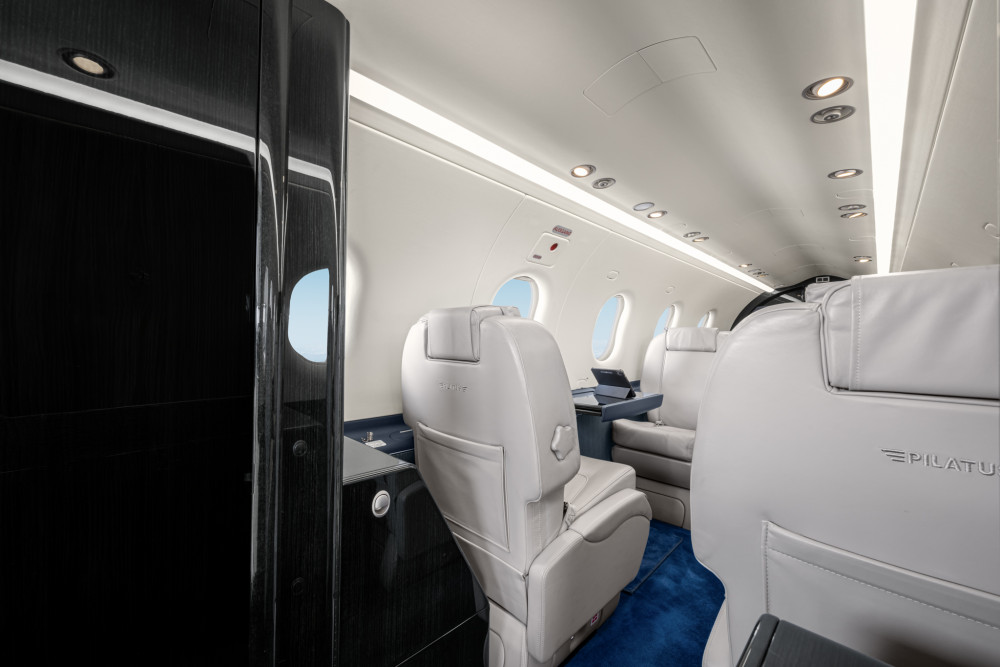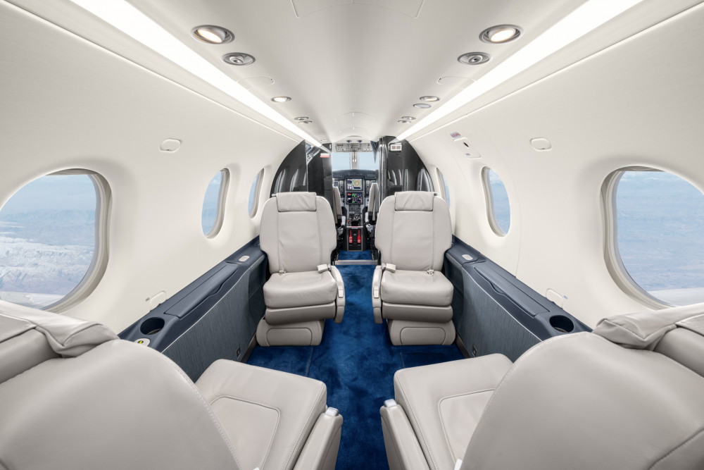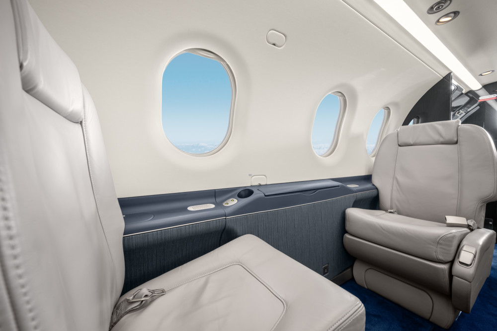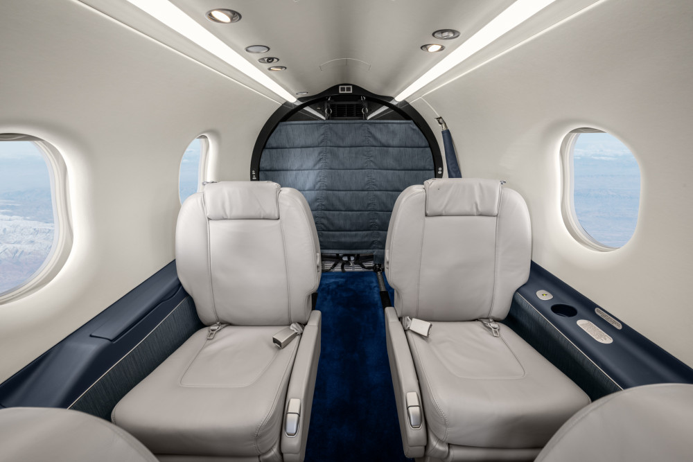 The cabin is sized and shaped to be used rather than just occupied: a flat floor, stand-up loading through a large aft cargo door, and configurations that can shift between executive seating and utility transport. Pressurization supports comfortable cruise altitudes for passengers, and the aircraft’s baggage/cargo handling is a differentiator for buyers who routinely travel with equipment, bulky luggage, or mixed passenger-cargo loads.