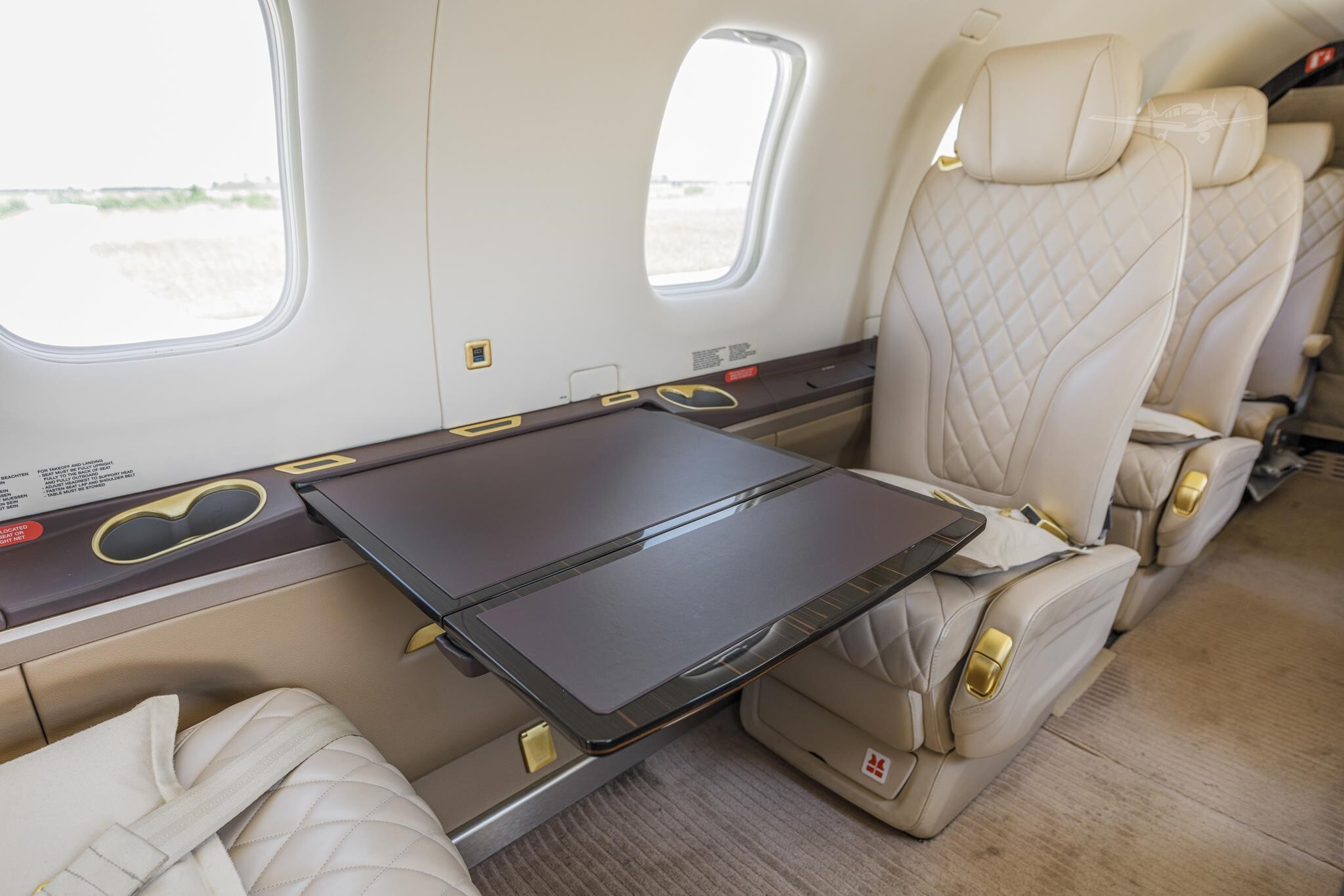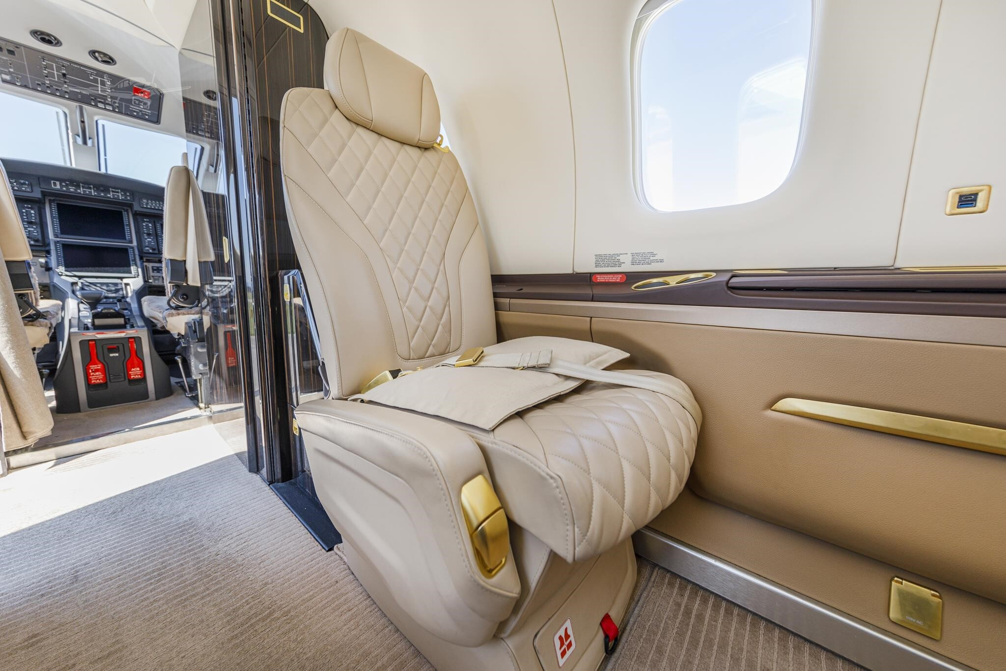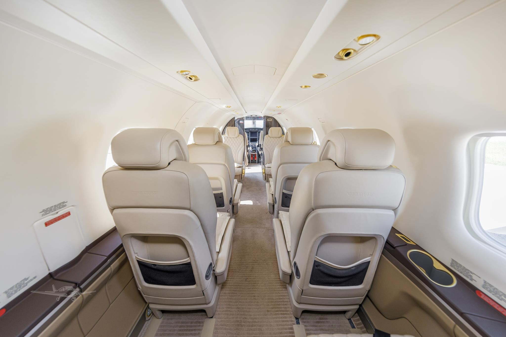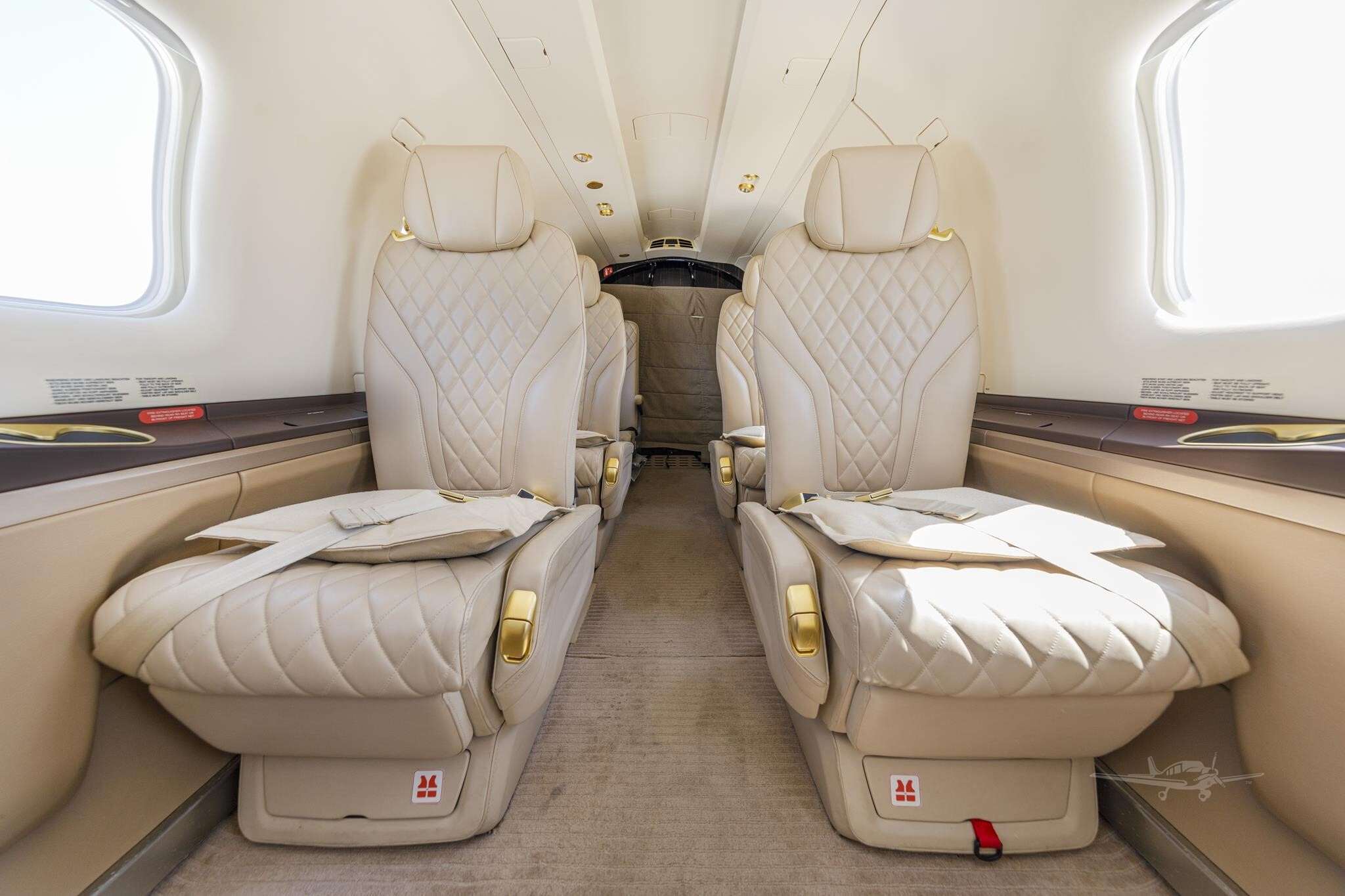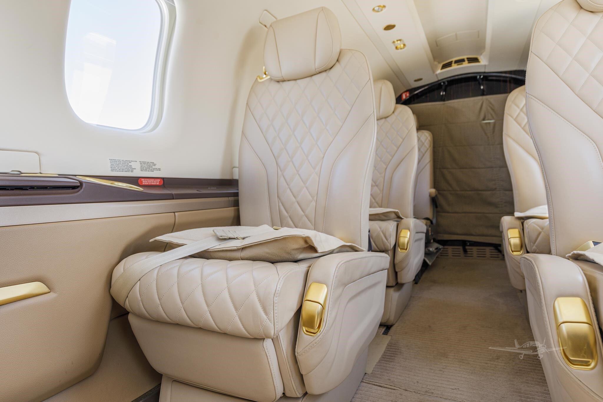 - Interior Features: Quilted seat facings, forward lavatory, large oxygen system, cabin drop-down masks