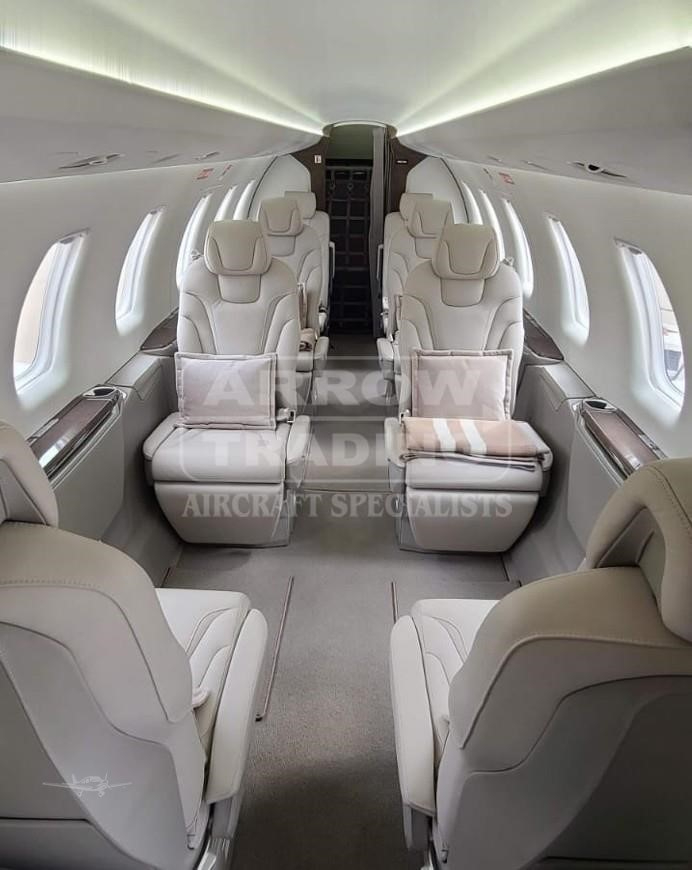 The cabin is arranged to be functional and adaptable, typically with a club seating section and options for additional seats depending on interior and certification. A key differentiator is the large aft cargo door that supports loading bulky items more easily than many light jets, which can reduce compromises on baggage when traveling with equipment. Expect a business-jet environment focused on practical space and mission flexibility rather than a heavy emphasis on ultra-quiet isolation.