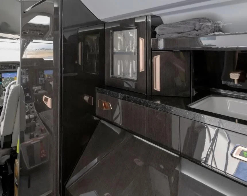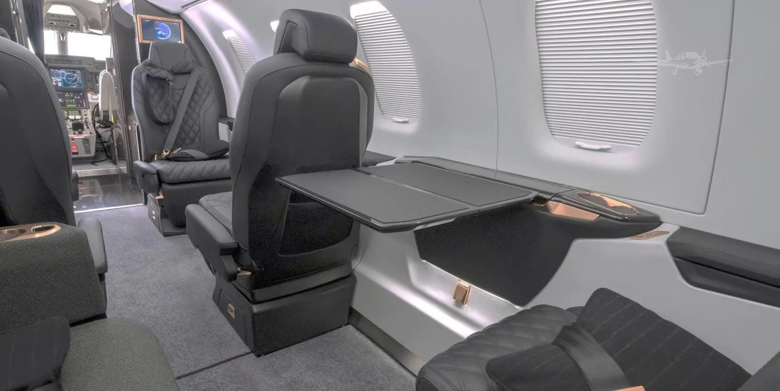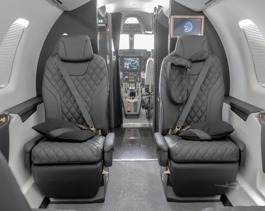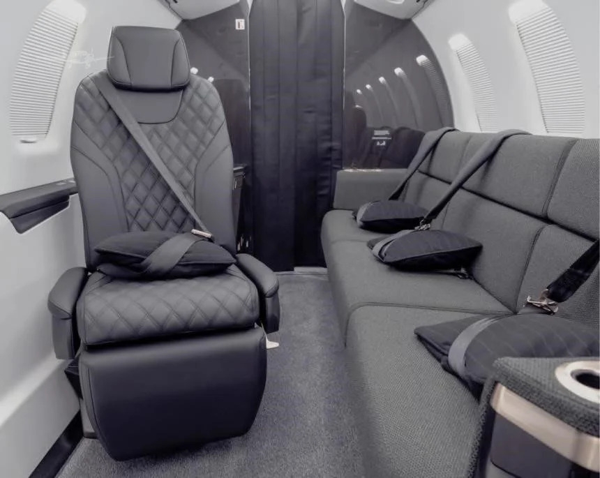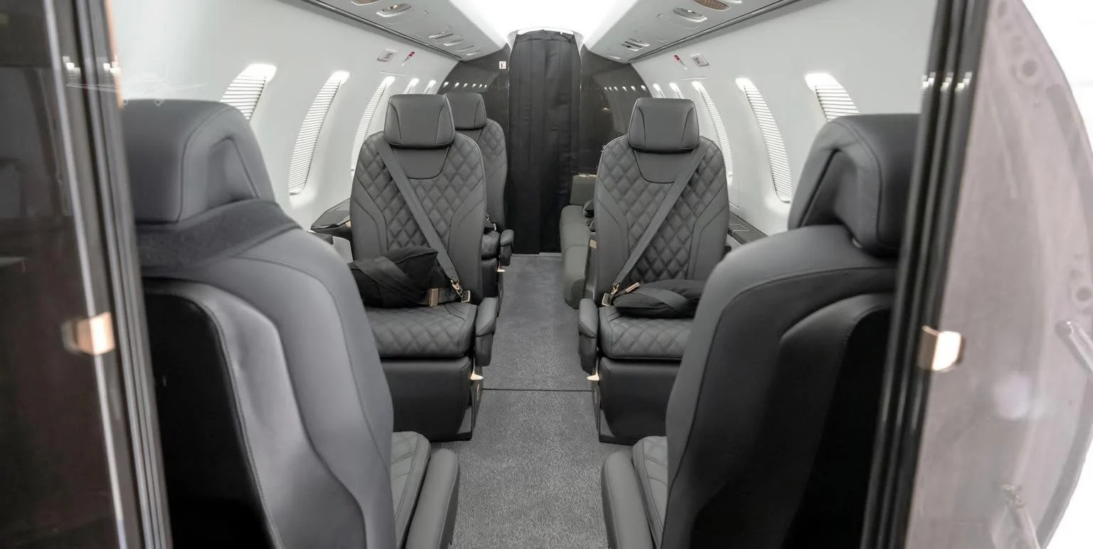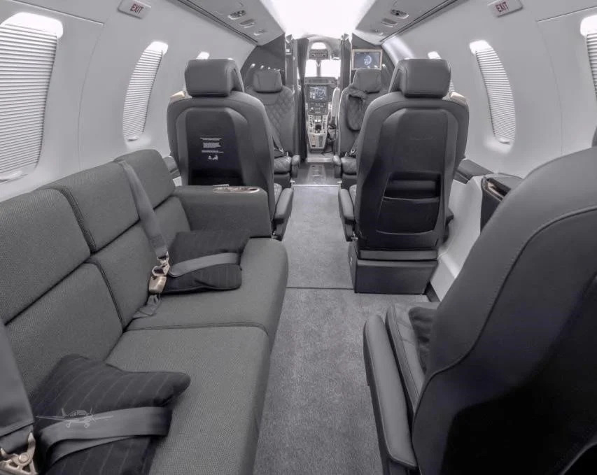 The cabin is arranged to be functional and adaptable, typically with a club seating section and options for additional seats depending on interior and certification. A key differentiator is the large aft cargo door that supports loading bulky items more easily than many light jets, which can reduce compromises on baggage when traveling with equipment. Expect a business-jet environment focused on practical space and mission flexibility rather than a heavy emphasis on ultra-quiet isolation.